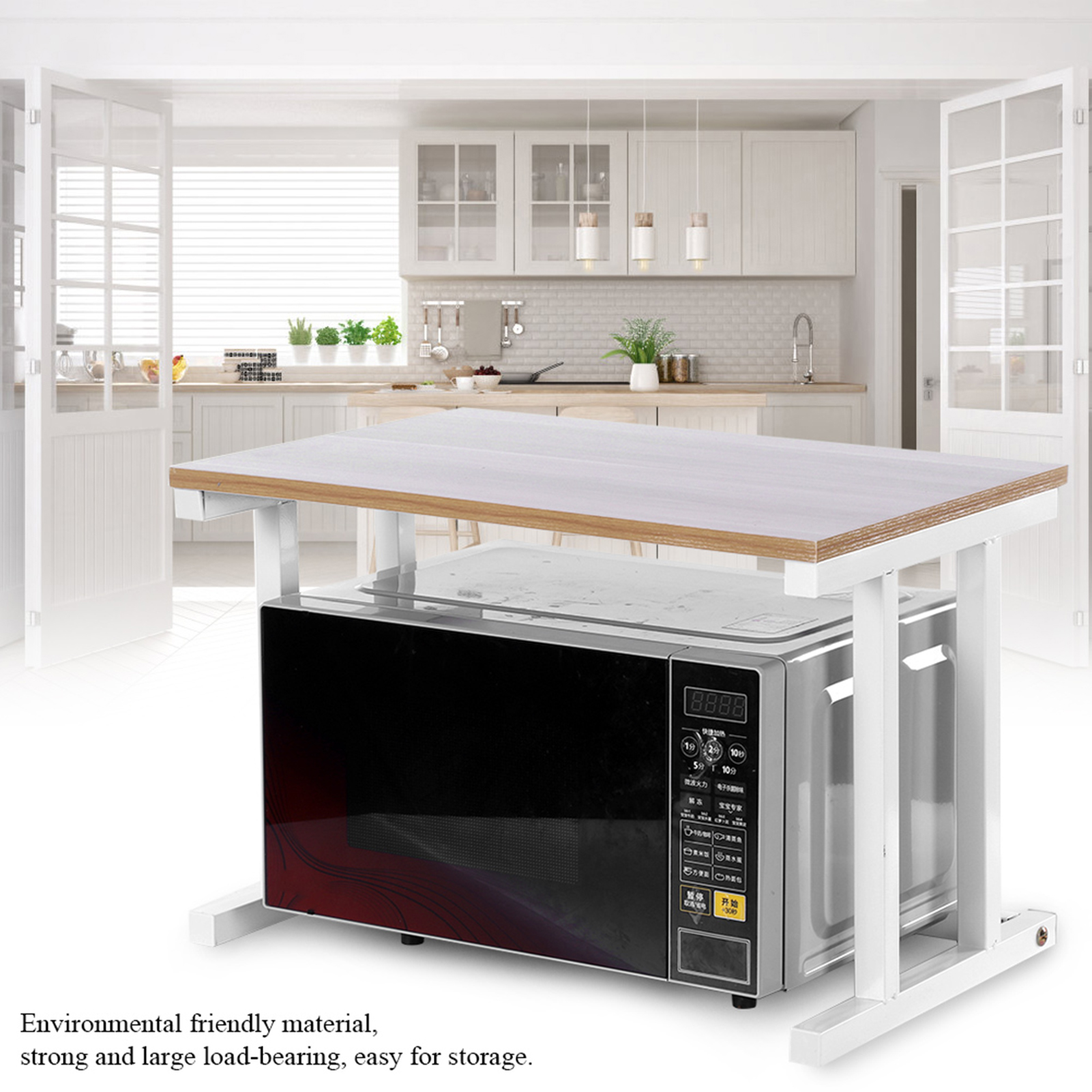 3. Zwei Ebenen, eine Ebene zum Schutz des Mikrowellenofens und eine weitere Ebene zur Aufbewahrung von Küchenartikeln. Machen Sie unsere Küche sauber und ordentlich.