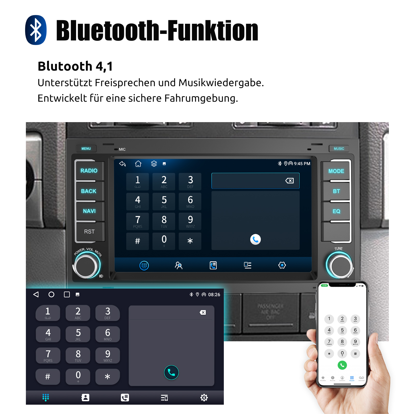 Externes Anti-Noise Mikrofon: Autoradio mit eingebautem klarem Mikrofon und externem Anti-Noise-Mikrofon für klare und angenehme Telefonate. Nehmen Sie Anrufe entgegen, während Sie die Hände für absolut sichere Fahrmanöver frei haben.