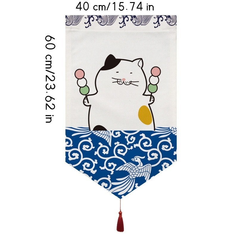 Japanese Short Noren Lucky Cats Printed Canvas Doorway Curtain Kitchen Decor
