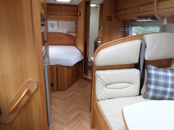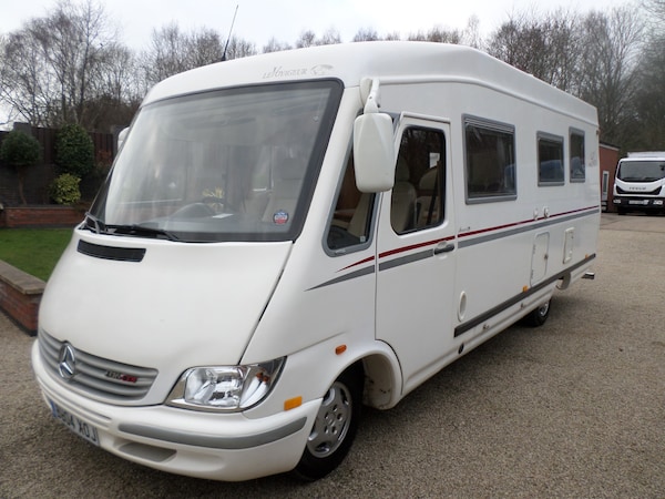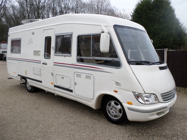 SPRINTER PILOTE LE VOYAGER 2.7 DIESEL, 3500 kg, ALARM, CENTRAL LOCKING, RADIO MULTI CD STEREO, REVERSING CAMERA, CAB AIR CONDITIONING, DIESEL ENGINE PRE-HEATER. CRUISE CONTROL, UNMARKED EMBOSSED CREAM LEATHER SWIVEL CAPTAINS CHAIRS, CREAM LEATHER DINING AREA WITH SWIVEL TABLE, DRINKS CABINET, GAS DOUBLE HOB, EXTRACTOR FAN, MICROWAVE, FRIDGE FANS, GRILLE / OVEN, STAINLESS STEEL SINK WITH SINGLE DRAINER AND MIXER TAP. REAR FIXED DOUBLE BED, FRONT ELECTRIC DROP DOWN DOUBLE BED, GENEROUS WARDROBE AND STORAGE, SEPARATE SHOWER, FLUSH TOILET, LPG ON BOARD GAS TANK, LPG 12V GAS GENERATOR, SOLAR PANEL, LEISURE BATTERY, 240V INVERTER, OYSTER SATELLITE DISH, TELEVISION, AMPLE STORAGE, NEW TRUMA COMBI BOILER, DEPLOYABLE SIDE STEP, ON BOARD WATER TANK, FULL UNUSED AWNING, FULL TOW PACK, OUTSIDE SHOWER, FULL FITTED CARPET THROUGHOUT, REAR DETACHABLE STORAGE BOX, VEHICLE HAS BEEN STORED INSIDE, LOOKS AND DRIVES SUPERB, FULL SERVICE HISTORY, FEBRUARY 2027 MOT