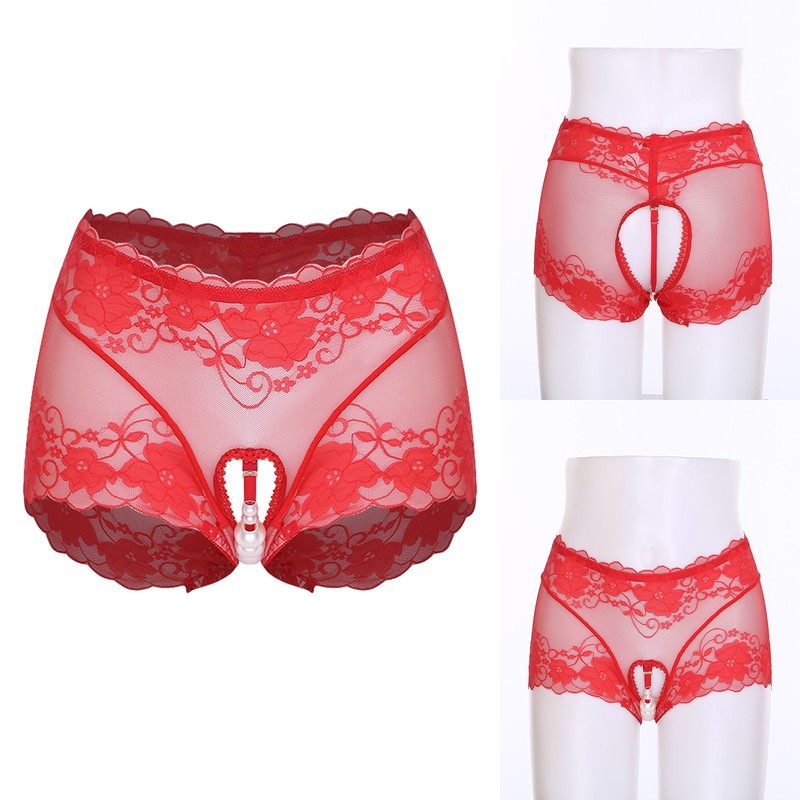 Vorderseite mit durchsichtigem Spitzendesign, offenem Po und minimaler Abdeckung.