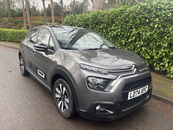 This 2024 Citroen C3 PLUS is a superb example, having had only one owner from new. This stylish hatchback is powered by an efficient 1.2 litre petrol engine, meeting Euro 6 emissions standards. It comes equipped with a Visibility Pack that includes automatic headlights for enhanced convenience. Parking is made simpler with rear parking sensors and a reversing camera, further aided by automatic air conditioning for a comfortable cabin environment. Entertainment and connectivity are well catered for with the Citroen Connect DAB radio, featuring six speakers, Android Auto, Apple CarPlay, and Bluetooth. The C3 PLUS offers a compelling driving experience, with an acceleration of 0 to 62 miles per hour achieved in just 10.1 seconds. This performance, combined with its low insurance group rating, suggests it offers excellent value and running costs compared to similar vehicles. This well appointed and carefully maintained Citroen C3 PLUS presents a practical and enjoyable option for any driver.. 1 USB Connection,12V Socket,16in Alloy Wheels - Matrix - Bi-tone,2-3 - 1-3 Split Folding Rear Bench,3D Rear Lights Signature,ABS - Anti-Lock Braking System,Airbags - Driver,Airbump on Side Door Panel,Anti-Theft Alarm,Automatic Activation of Hazard Warning Lights in Case of Severe Deceleration,Automatic Air Conditioning,Automatic Door and Boot Locking when in Motion,Body Colour Door Handles,Body Colour Front and Rear Bumpers,Boot Light,Central Locking with Locked Indicators and Interior One-Touch Lock Button,Chrome Decoration on Front Face - Under Chevrons and around Daytime Running Lights,Citroen Connect DAB Radio with 6 Speakers,Citroen Illuminated Signature in LED Headlights and LED Daytime Running Lights,Coffee Break Alert,Cruise Control with Speed Limiter,Dark Tinted - Rear Side and Tailgate Windows,Day-Night Switchable Interior Rear View Mirror,Driver and Front Seatbelts with Pyrotechnic Pretensioners and Force Limiters,Drivers and Passengers Sunvisor with Courtesy Mirror - Non Illuminated,ESP - Electronic Stability Programme with Anti-Skid System,Electric Child Locks,Electrically Adjustable - Heated Folding Door Mirrors,Fog Lights Integrated into the Front Bumper,Front Head Restraint with Height Adjustment,Front Lighting Panel with Map Reading Lights,Front Passenger Airbag - Can be Deactivated,Front Seats Adjustable with Forward-Back Slide and Adjustable Backrest,Front Sequential Electric Windows with One-Touch - Open-Close and Anti Pinch System,Front Side Airbags and Front and Rear Curtain Airbags,Gloss Black Dashboard with Grey Surround,Glossy Black Colour Pack,Height Adjustable Drivers Seat,Height and Reach Adjustable Steering Wheel,Hill Start Assist,ISOFIX Mountings on Outer Rear Seats with Top Tether and Labels Indicating Fixing Points,Instrument Cluster with White LCD and Analogue Gauges,LED Daytime Running Lights,LED Headlights,Lane Departure Warning System,Leather Gear Lever with Leather-Effect Gaiter and Overstitching,Manual Parking Brake with Chrome Finish Button,Matt Black B Pillars,Monotone Horn,Multi-Function On-Board Trip Computer,Parcel Shelf,Power Assisted Steering,Puncture Repair Kit,Rear Parking Sensors,Rear Sequential Electric Windows with One-Touch - Open-Close and Anti Pinch System,Rear Windscreen Wiper with Intermittent Mode Linked to Vehicle Speed and Automatic Activation when Reverse Gear Selected,Remote Central Locking with Two Plip Keys,Reversing Camera,Roof - Bi-Tone - Perla Nera Black,Roof-Colour Rear View Mirror Caps,Safety Pack,Seatbelt Unfastened on the Move Audible and Visual Alert for Front and Rear Seats,Steering Wheel with Satin Chrome Elements and Audio-Telephone Controls,Three Rear Seats with Headrests,Three Rear Three-Point Seatbelt - Outer Seats have Pretensioners and Force Limiters,Tyre Pressure Monitoring System,Upholstered Armrest in Front and Rear Doors,Visibility Pack