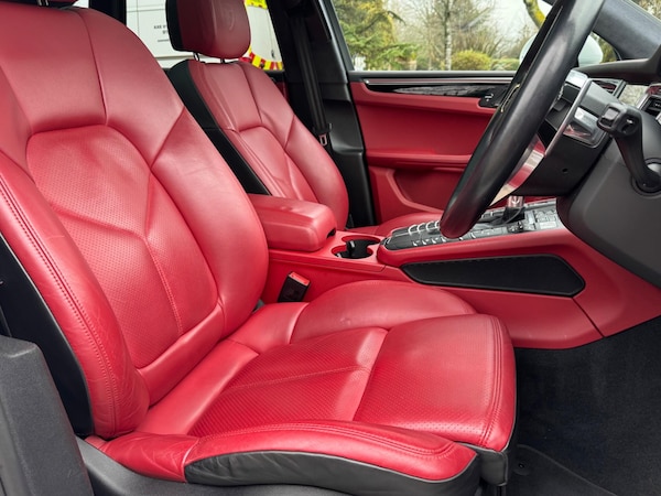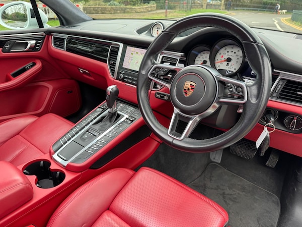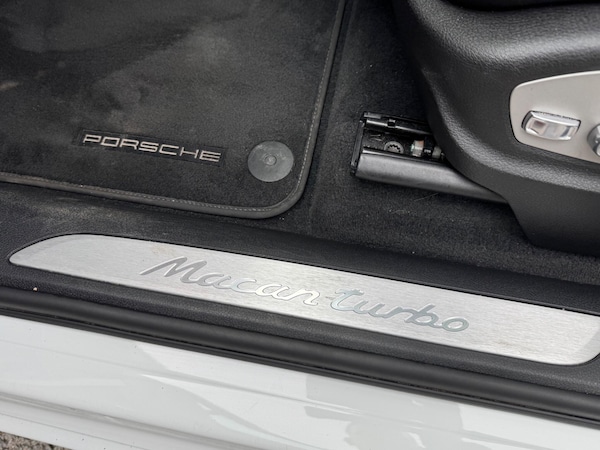 This 2017 Porsche Macan T V6 Turbo boasts a full service history, ensuring its excellent provenance. This four wheel drive model is powered by a 3.6 litre petrol engine and meets Euro 6 emissions standards. Inside, you'll find a host of premium features designed for comfort and convenience, including three zone climate control, adaptive sports seats with an 18 way memory package, and a BOSE surround sound system. For added ease, it comes equipped with automatic headlight activation and front and rear park assist.Experience exhilarating performance with this Macan, capable of accelerating from 0 to 62 miles per hour in just 4.8 seconds, demonstrating its superior capability compared to other vehicles in its class. The large boot space offers practicality for all your needs. Furthermore, the vehicle will be provided with a 12 month MOT, giving you peace of mind on the road.DescriptionPrice When New (inc VAT)21-inch 911 Turbo Design wheels£1,943Panoramic roof system£1,092Air suspension with self-levelling, ride-height control and Porsche Active Suspension Management (PASM)£1,004Adaptive cruise control with Porsche Active Safe (PAS)£834LED main headlights including Porsche Dynamic Light System Plus (PDLS Plus)£753Sport Chrono Package£729Air intake grilles painted in black (high-gloss)£599Lane Change Assist£396ParkAssist (front and rear) with reversing camera£332White Instrument dials£332Privacy glass£320SportDesign exterior mirrors£315Tinted LED taillights with adaptive brake lights£308Seat heating (front)£284Automatically dimming exterior and interior mirrors (i.c. w Comfort Memory Package)£243Speed limit indicator£243White compass dial/sport chrono dial£234Heated steering wheel£182Mechanical roll-up sunblind for rear side windows£146Monochrome Black exterior package (high-gloss)£138Porsche Crest embossed on head restraints (front)£138Full colour wheel centre caps£110Smoker package£3614-way power seats with memory package£0Black-Garnet Red two-tone leather interior with leather seats£0White - gloss£0White pain