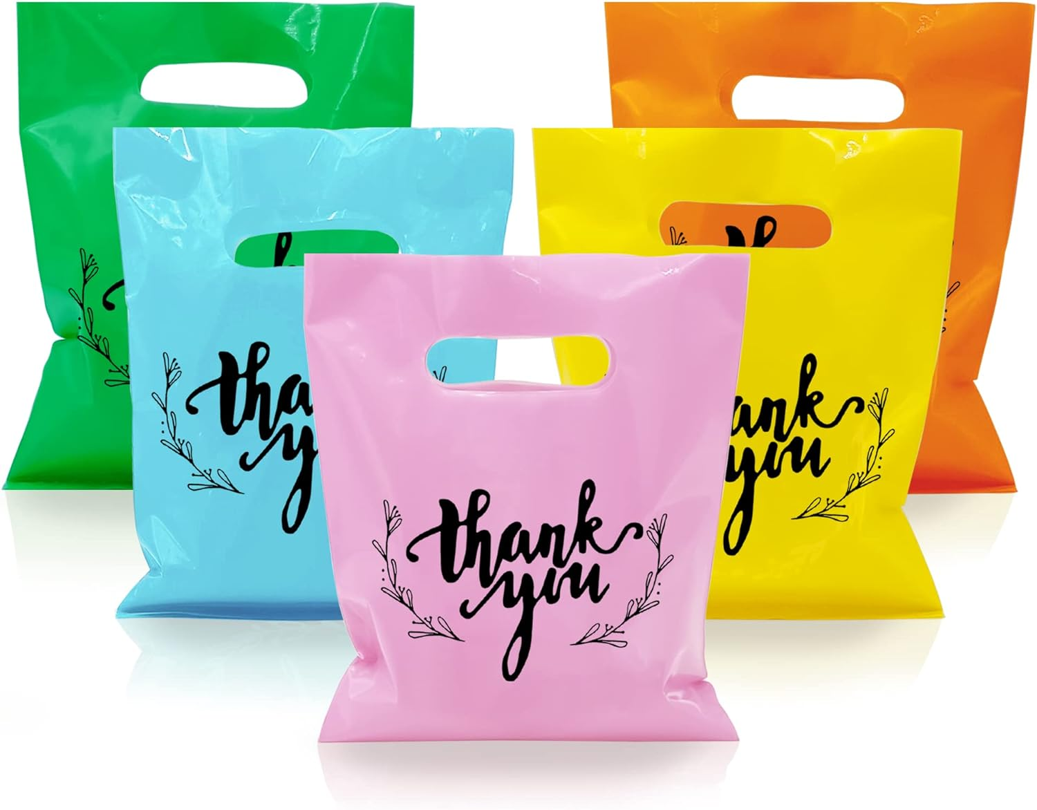 - PACKAGE: Thank you plastic bag contains 5 colors, pink, blue, orange, yellow, green, and there are 20 pcs for each color, there's plenty of room for small gifts, candy, or snacks.