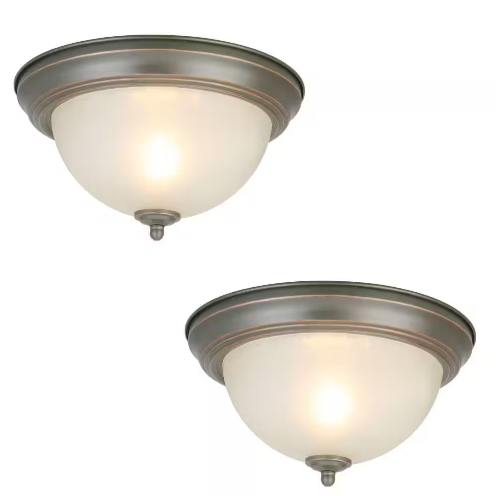 11 In. 1-Light Oil Rubbed Bronze Flush Mount with Frosted Glass Shade (2-Pack)