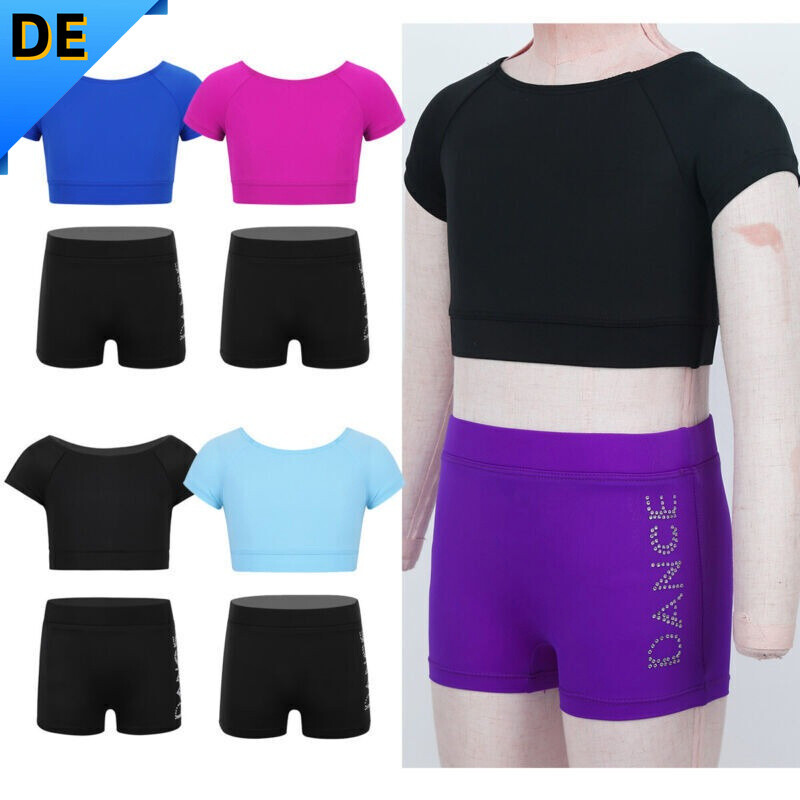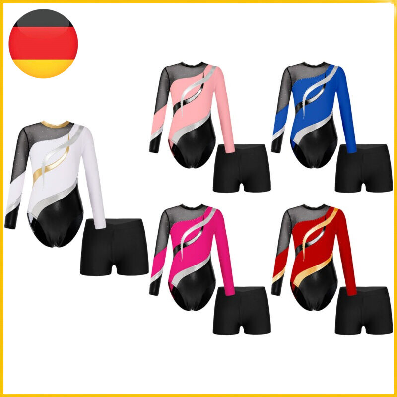 Mädchen Turnanzug Strass Glitzer Ballettanzug Tanzbody Cut Out Gymnastikbody Set