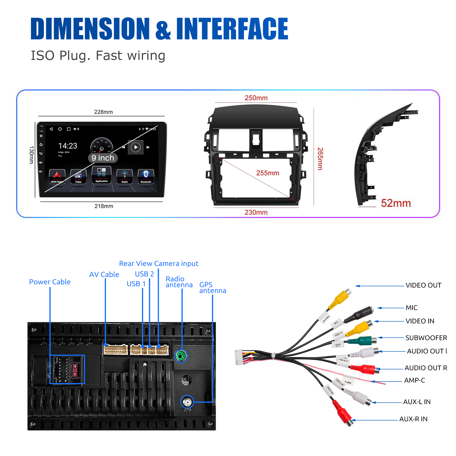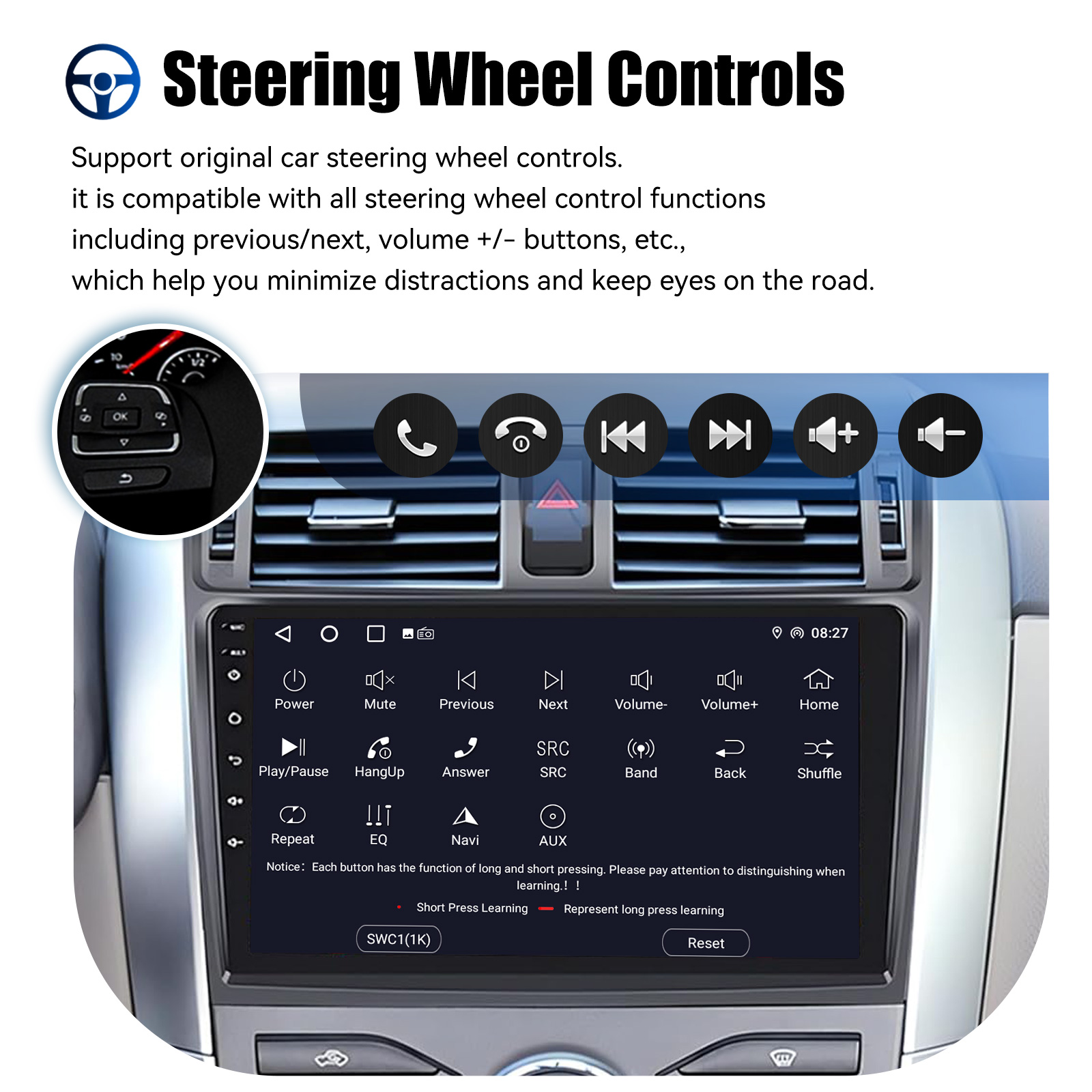 9 Inch Android 14 Car Radio For Toyota Corolla (2009-2013): The