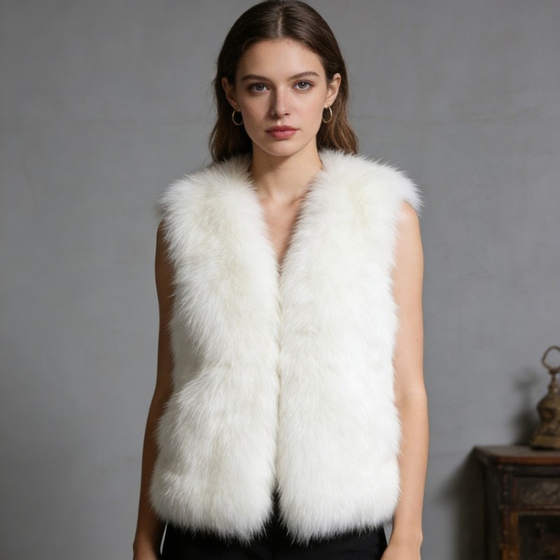 Made from a blend of faux fur and polyester, it is soft, cozy and offers a fuzzy texture, providing warmth and comfort to the wearer.