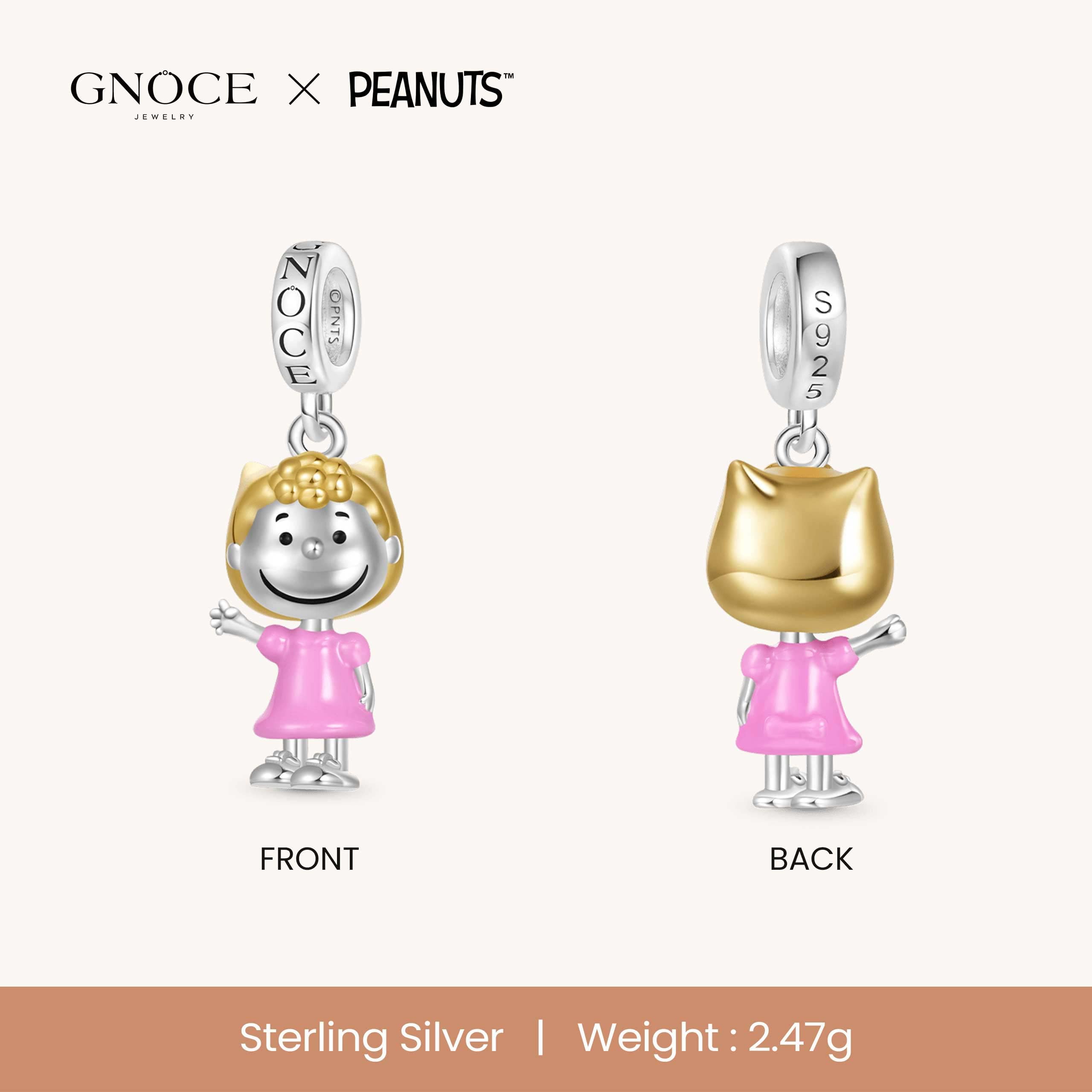 GNOCE Peanuts Sally Charm S925 Bracciale pendente pendente in argento sterling, regalo adatto