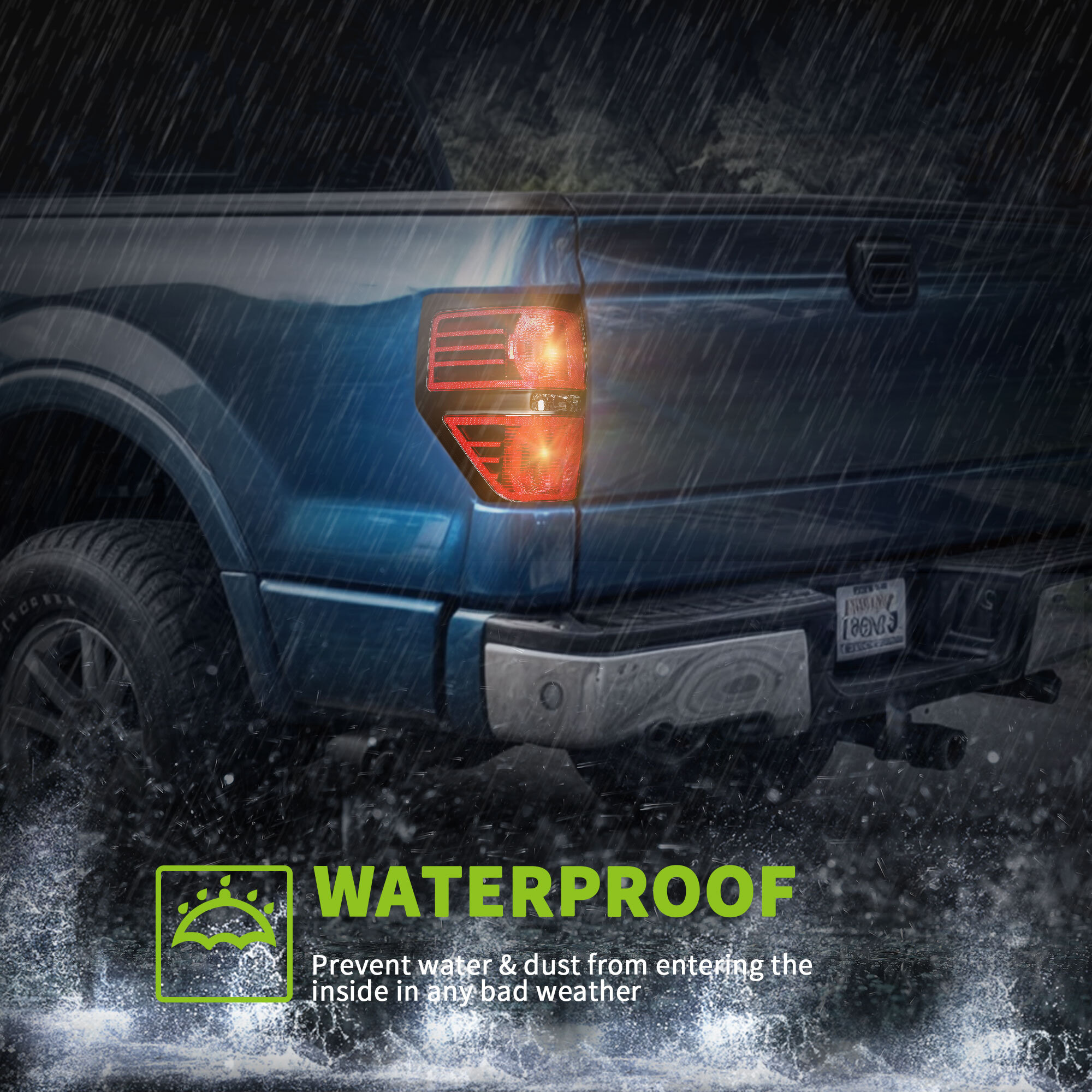 - Triple protection tail light lens design: UV filter coating design, waterproof coating design, impact resistant coating design.
