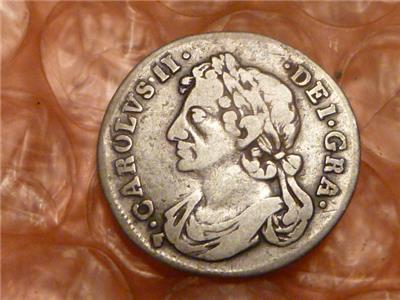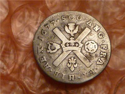Original Scotland 1677 Charles II Silver Sixteenth 1/16 Dollar Extremely RARE #1