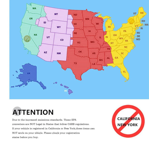 Not legal for sale in California and New York. If your vehicle is registered in California and New York, do not purchase this part. If your vehicle meets California and New York requirements, but is not registered in California and New York, this converter will work on your vehicle.