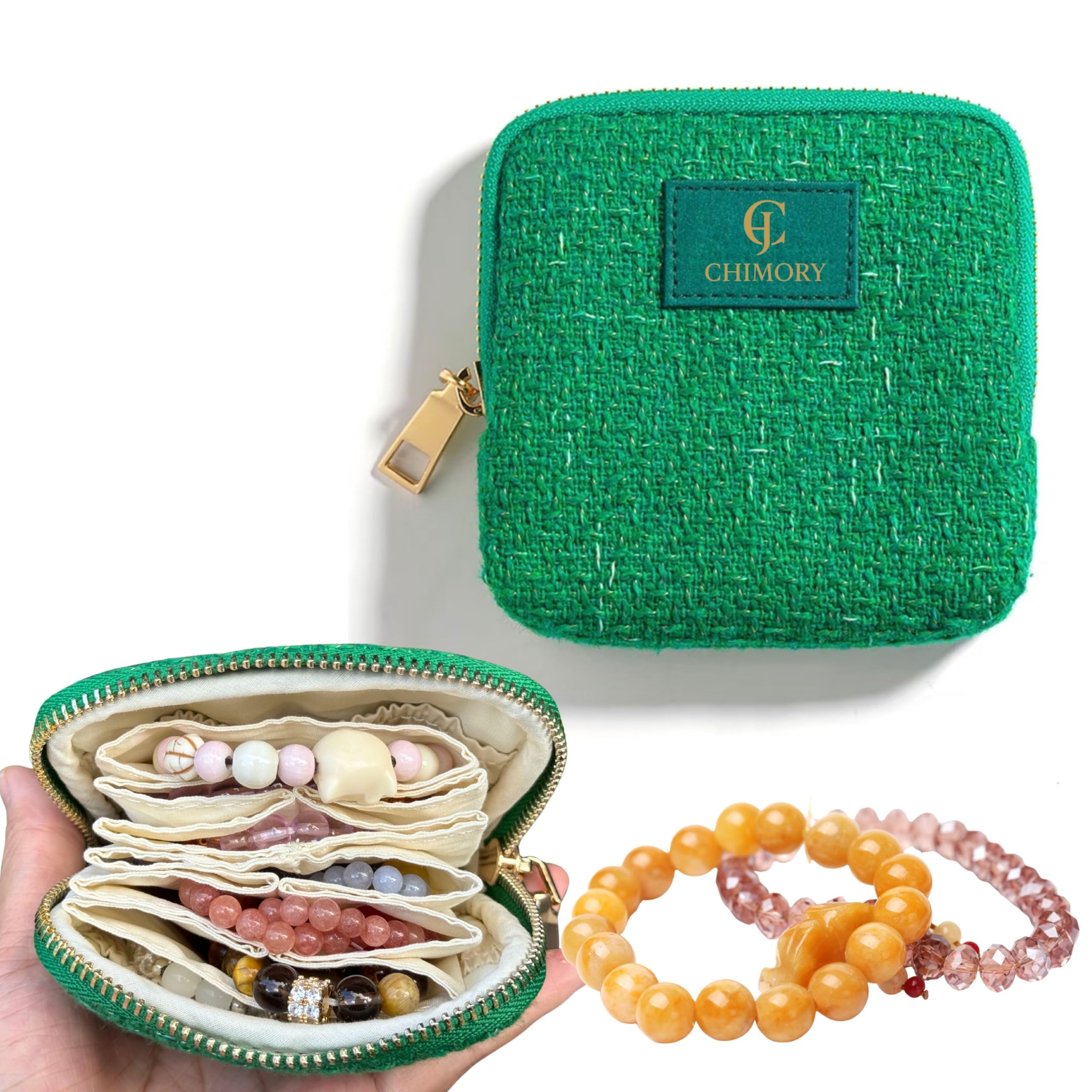 CHIMORY Tweed Travel Jewelry Pouch - Mother's Day Gift Onesize, Green-A