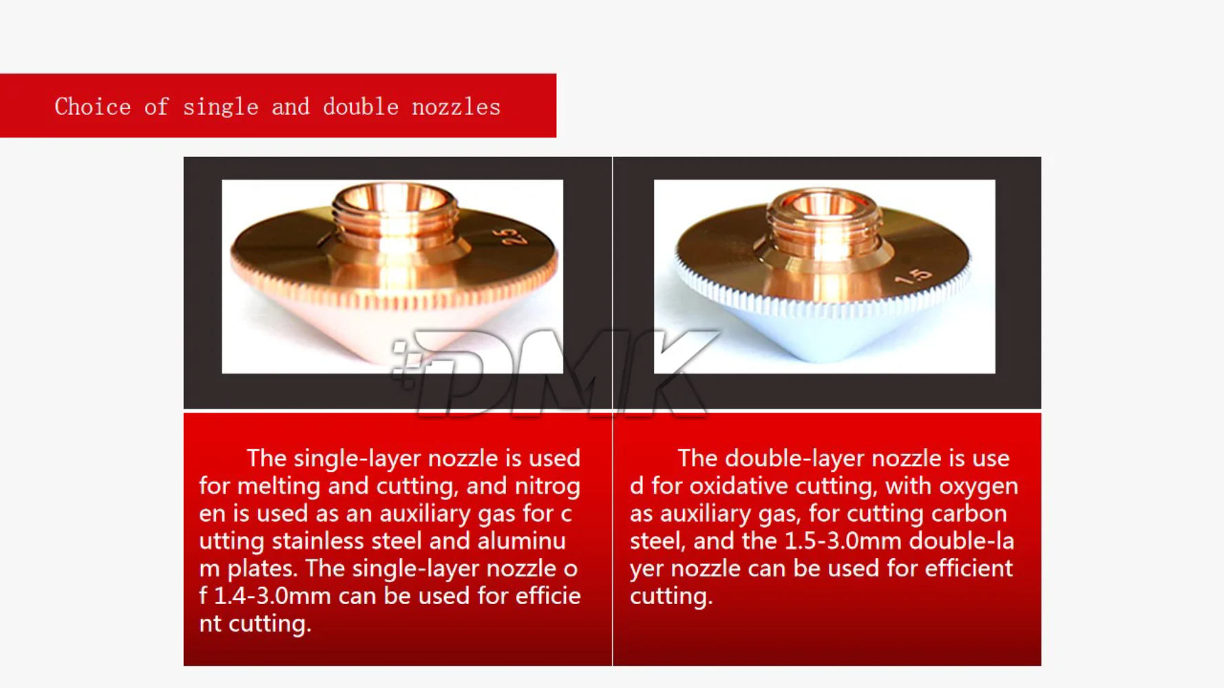 Precision Cutting Performance:Single and double layer nozzle designs provide precision cuts, enhancing the quality of your laser cuts.