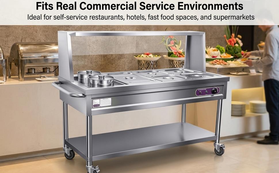 【VERSATILE APPLICATION SCENARIOS】 Ideal for self-service restaurants, hotels, fast food restaurants, supermarkets, buffets, catering events, and banquet halls. Designed for chefs and service staff who need dependable food warming and quick repositioning during service.