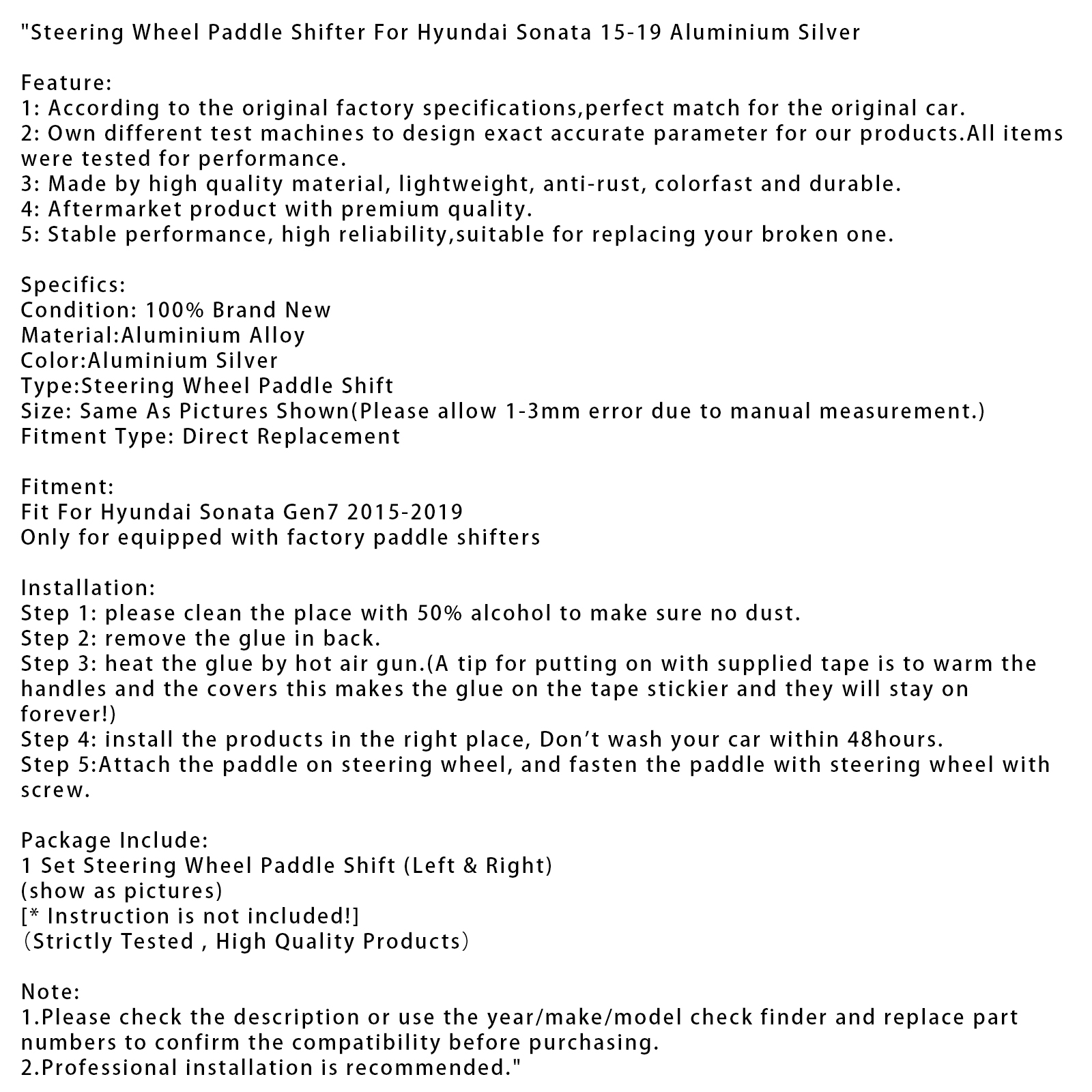 Steering Wheel Paddle Shifter For Hyundai Sonata 15-19 Aluminium Silver