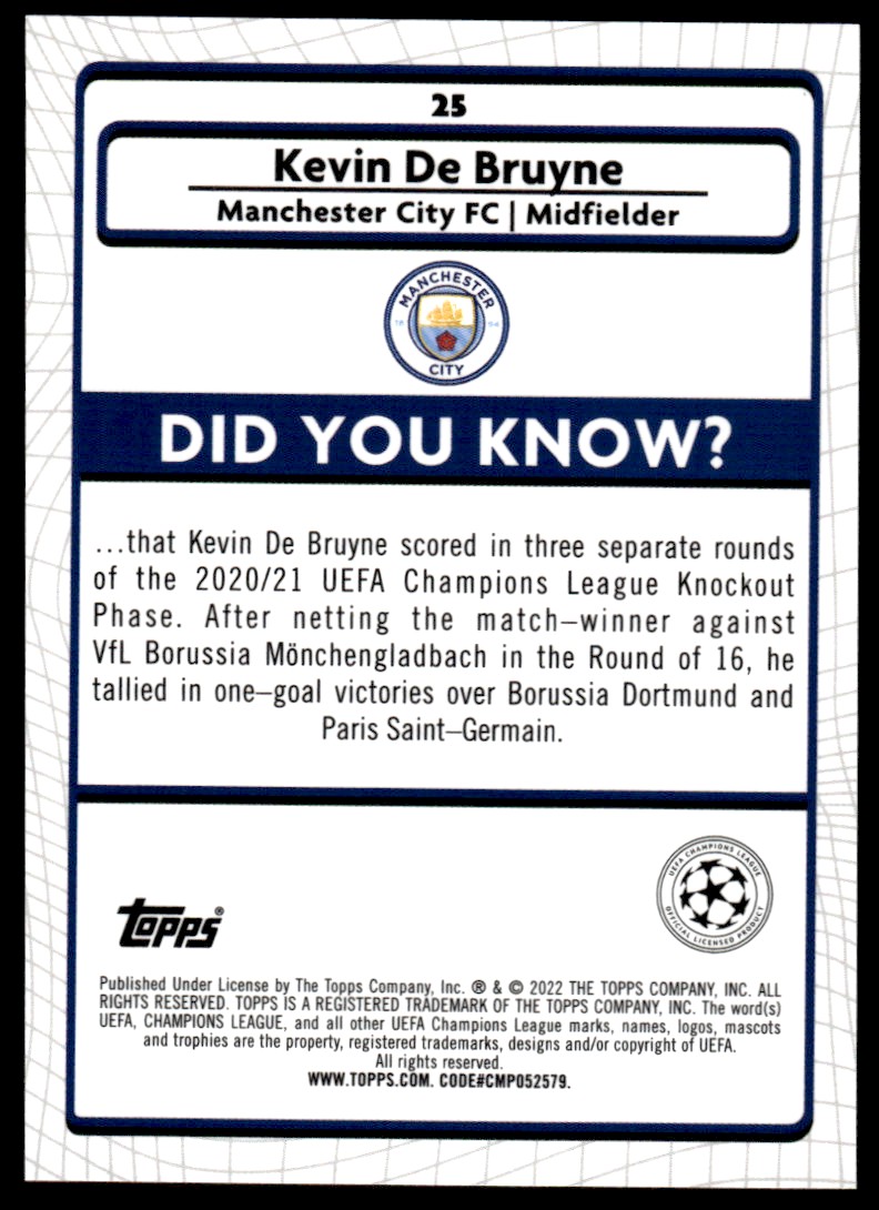 2021 Topps UEFA Merlin 25 Kevin De Bruyne