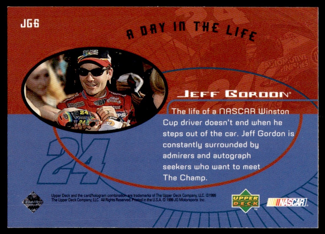 1999 Upper Deck Road To The Cup A Day In The Life JG6 Jeff Gordon