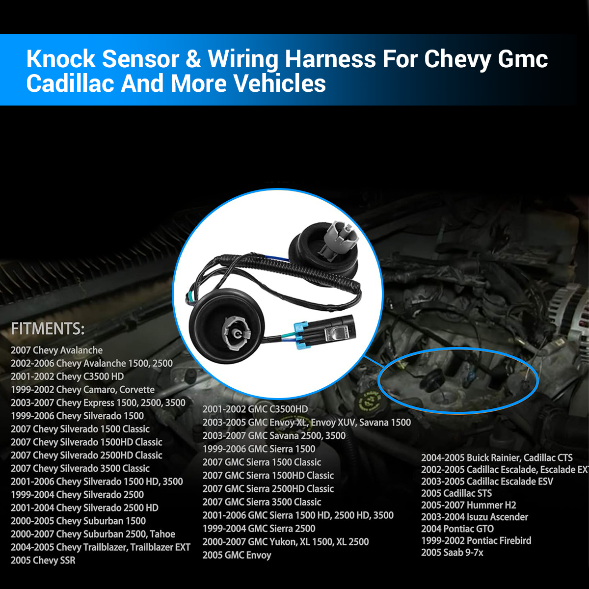 2007 GMC Sierra Denali 1500 Classic Engine Knock Sensor Harness with Dual Connectors & Grommets