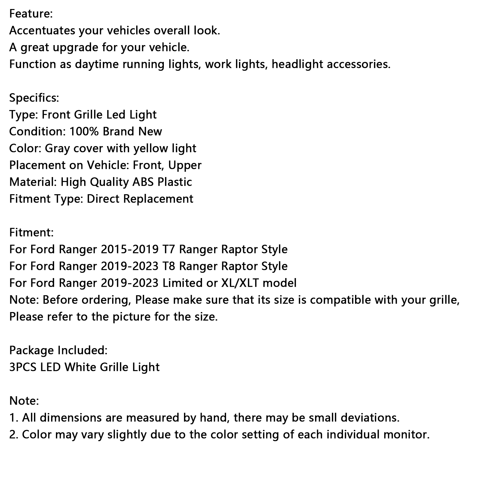 Note: Before ordering, Please make sure that its size is compatible with your grille, Please refer to the picture for the size.