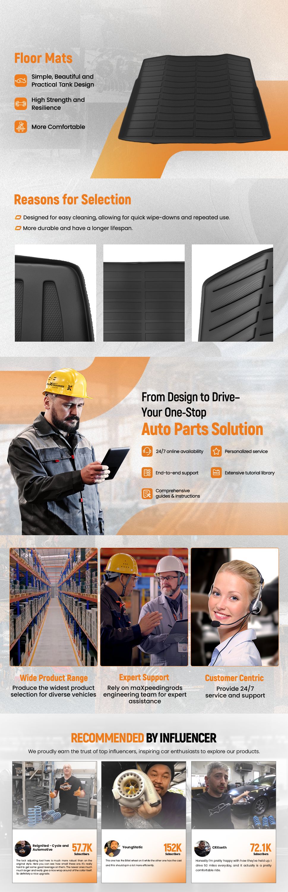 Deep channel design + raised edges traps mud, snow, and spills like a containment pool.