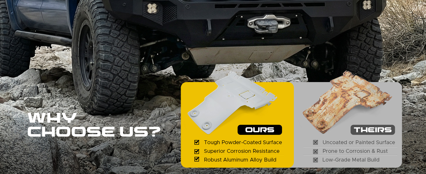 Corrosion Can't Touch This: Our powder-coated surface passes 72-hour salt spray tests, providing superior corrosion resistance & lasting strength. It keeps your underbody guard looking new and performing reliably in wet, salty, or humid environments