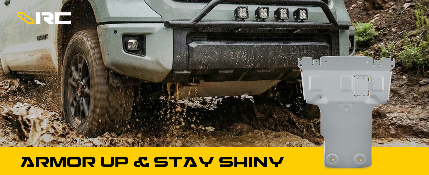 VRC's front skid plate is compatible with 2014-2021 Toyota Tundra & 2020-2022 Sequoia models and mounts directly to factory points for a secure, hassle-free fit. Protect your underbody from rocks, ice, branches, and debris while adding a rugged, aggressive look to your ride. Crafted from premium aluminum alloy, our crash plate resists dents, impacts, and harsh weather for long-lasting durability. The powder-coated finish delivers superior corrosion resistance, keeping your bash plate looking new even in wet, salty, or humid conditions. All mounting hardware is included for a quick, straightforward installation so you can hit the trails with confidence.