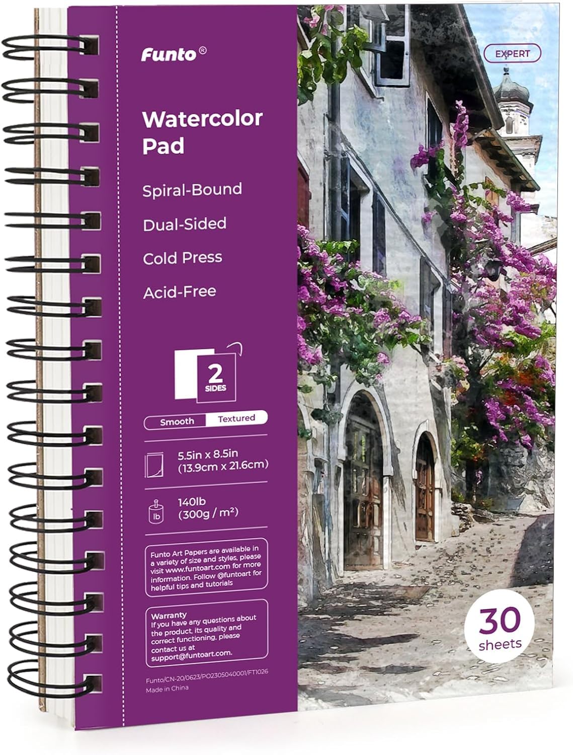 Watercolor Pad 5.5x8.5, 30 Sheets, 140lb/300gsm, Double-Sided Cold Press, Spiral Bound, Heavyweight Paper for Watercolor Painting