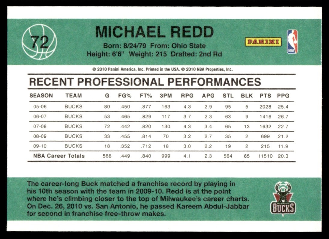 2010-11 Donruss Michael Redd Milwaukee Bucks #72