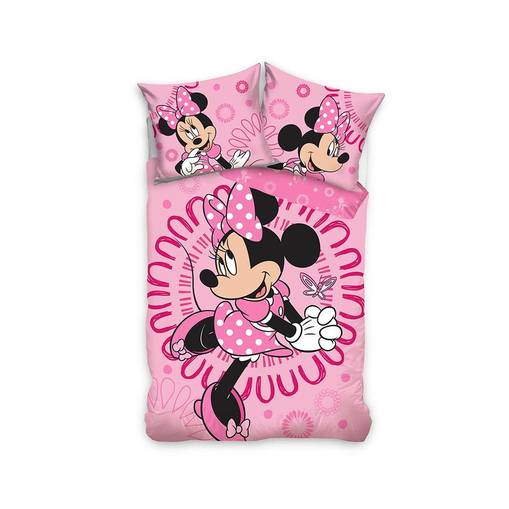 This Minnie Mouse duvet cover set is a great addition to any girls bedroom. The fun design features a beautiful image of Minnie Mouse posing, set on a pink background detailed with doodles. The reverse features a repeat pattern of Minnie, flowers and polka dots in pink, set on a pink background. This bedding set is suitable for machine washing and can be tumble dried on a cool setting.