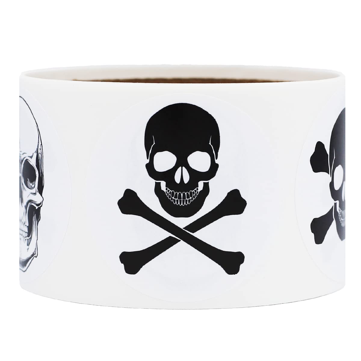 Add bold detail to your projects with these White Skull and Crossbones Stickers. Each roll includes 100 adhesive labels, each measuring 2 inches round, making them a great choice for crafts, decorations, packaging, and themed events. With a crisp white background and black skull and crossbones design, these labels deliver a striking look that draws attention. Made with a semi-gloss finish, these stickers offer a polished appearance while being durable enough for everyday use. The strong adhesive ensures each label applies securely to paper, cardboard, plastic, and other smooth surfaces, staying firmly in place without peeling or curling. These stickers are perfect for Halloween themes, classroom projects, party favors, retail packaging, or gift wrapping. They provide an eye-catching element that adds personality and character to any item. Businesses can also use them for promotional packaging or branding with a bold, edgy touch. Each roll contains 100 labels, offering just the right supply for smaller-scale or occasional use. Proudly made in the USA, these skull and crossbones stickers combine durable semi-gloss materials, consistent quality, and reliable adhesive for dependable performance across many applications.