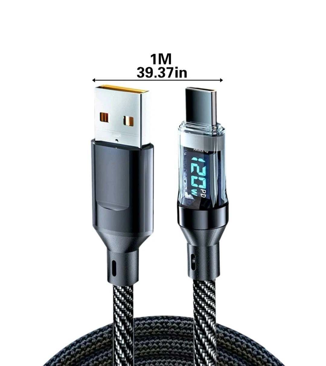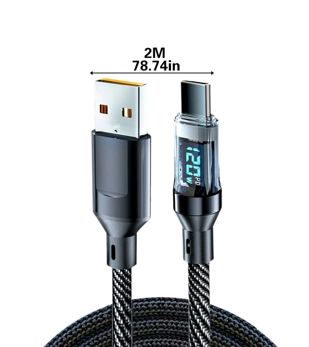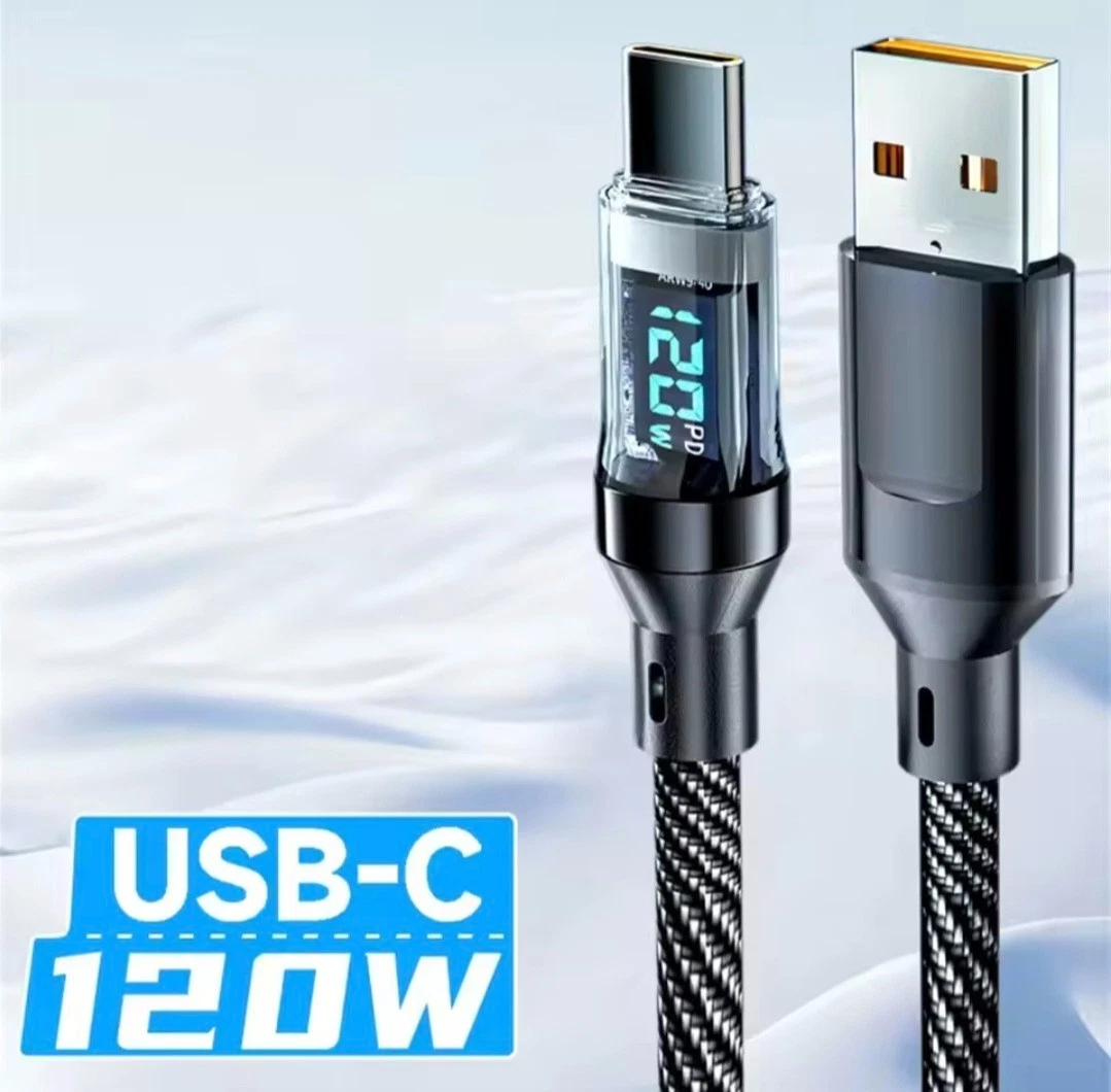 1. [120W fast charging] USB to TYPE-C data cable supports up to 120W, intelligent digital display, and clear power at a glance.