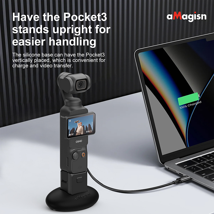 l The silicone base can have the Pocket3 vertically placed, which is convenient for charge and video transfer