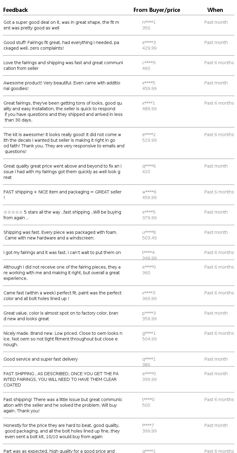 If you want any other color scheme, we can paint fairings according to your pictures. We can also produce individual parts if you need.