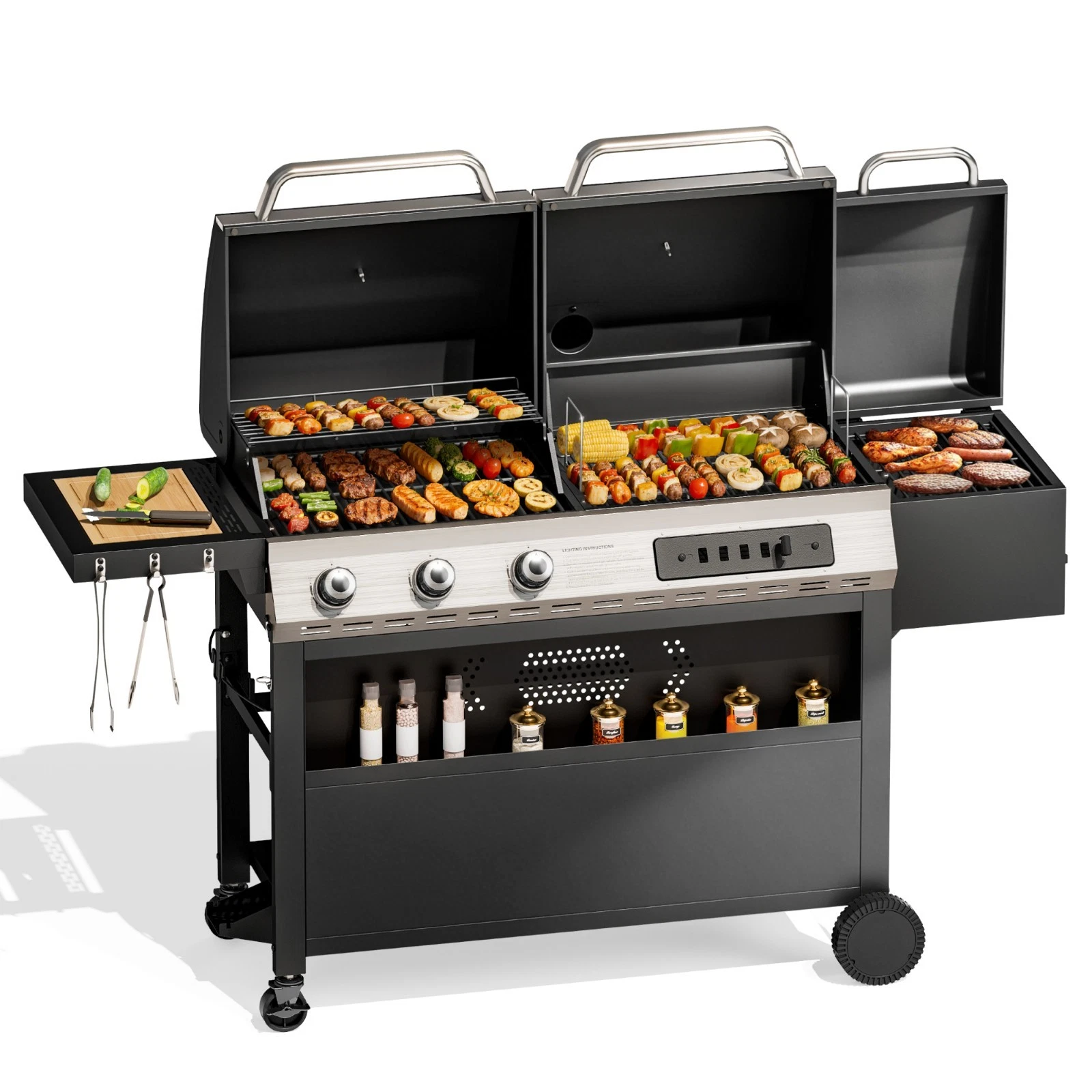 Dual-Fuel Versatility & Offset SmokerSpacious 839 Sq. In. Cooking Area:Primary Cooking Area: 568 sq. in.Offset Smoker Area: 140 sq. in.Warming Rack: 131 sq. in. to keep food hot.Material: Porcelain-enameled steel, stainless steel, cast ironSize: 22.6''D x 66.7''W x 49.2''HBurners: 3 stainless steel burnersFuel: Propane gas +CharcoalBTU: 30,000Wheels: 4 lockable wheels (2 swivel, 2 fixed)Case pack: 2 pc/setWarranty: One YearAbout UsWelcome to PatioFurnitureHub — where your outdoor space becomes an extension of your home. We offer a curated selection of patio furniture, shade solutions, outdoor kitchens, and more, designed for comfort, style, and lasting quality. Every item is chosen from trusted manufacturers, rigorously tested, and backed by a 1-year warranty and 30-day money-back guarantee. Whether you're creating a cozy retreat or an entertainment haven, we're here to help you find exactly what you're looking for—with ease and confidence. PaymentWe accept payment methods: PayPal, Payoneer, Visa, MasterCard, American Express, Discover, and credit cards. Payment should be completed within 3 days of auction closing, otherwise an unpaid dispute will be filed. If for any reason there is an issue with your purchase, please contact us before leaving feedback — we will be glad to work with you to resolve it. ShippingMost of the goods will be dispatched within 1-3 working days after confirming payment or settlement. We ship via UPS, FedEx, or USPS depending on your location. Please make sure the Ship-To address you enter during checkout is correct. Orders will be shipped to the address provided by eBay. We are not responsible for any incorrect or undeliverable addresses. Contact UsIf you have any questions or concerns about the product or your order, please contact our customer service department via email or send us a message on eBay. We will respond within 24 hours. ReturnsAll of our items come with a 30-day return policy. We ensure all items are new and in excellent condition prior to shipping. In the event that you receive an item that does not meet the standards above, please contact us via eBay messages. All returns must be in new original condition as received and should be shipped with delivery confirmation. If you need to return an item, please double-check to confirm the item is not working, then contact our customer service representative. Let us know the detailed problem and send us some pictures for confirmation. We only accept returns for items in original packaging. Please ensure the item has no man-made damage. Used items will not be accepted for return. |