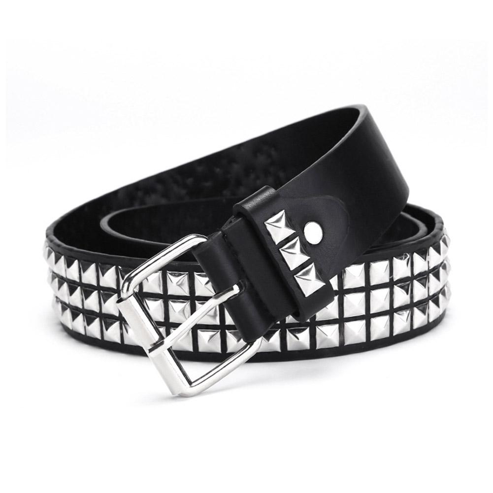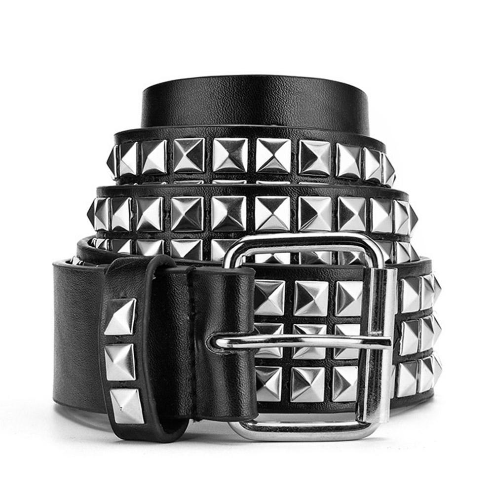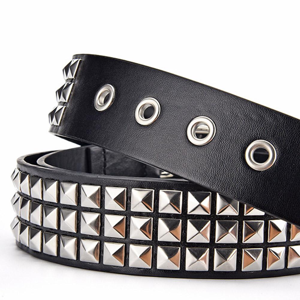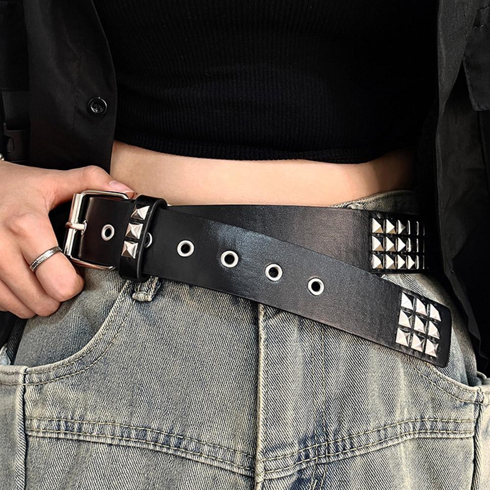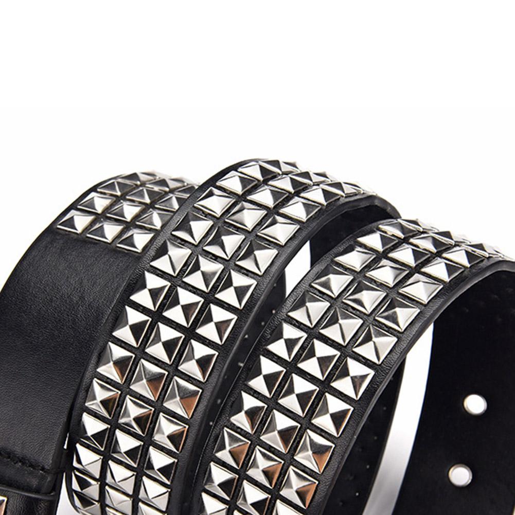 1. Unique Design: The Rivet Hollow Belt features a square bead rivet design, metal pyramid decoration, unique and stylish.
