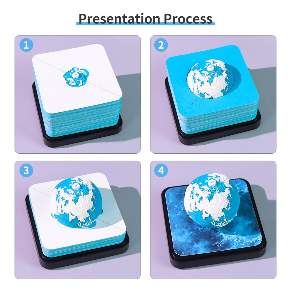Creative panoramic Design: This 3D stereoscopic sticky note book takes the Earth as its theme and uses panoramic paper-cutting technology to gradually display the three-dimensional outline of the Earth layer by layer, bringing a stunning visual effect, as if holding the entire world in your hands.