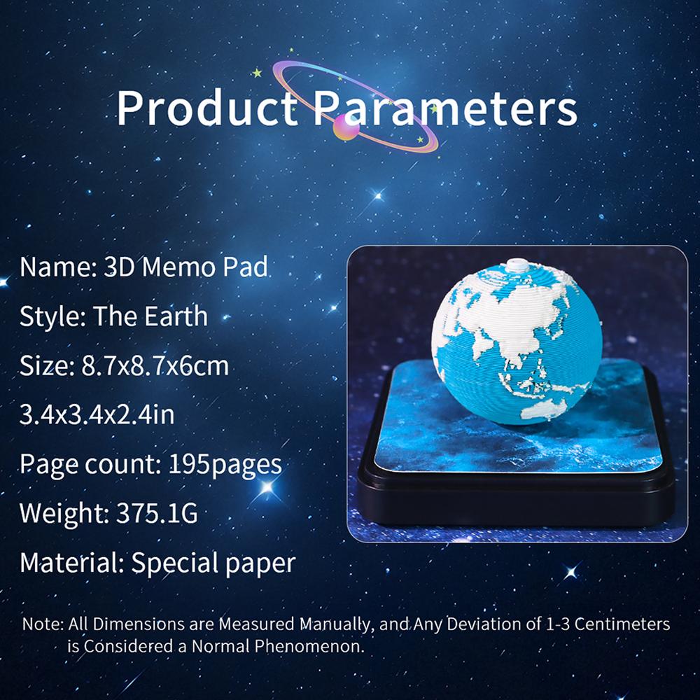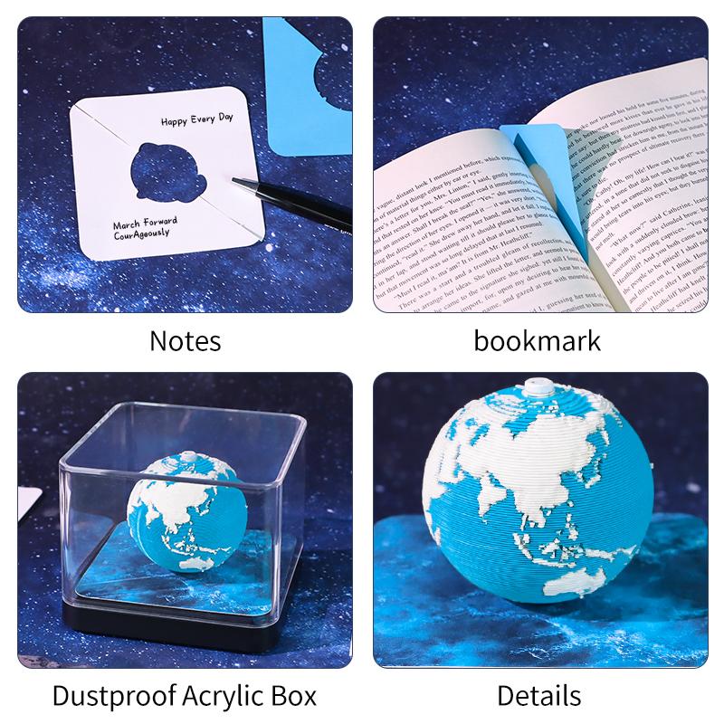 Practical and decorative: Besides being used as a notepad, it can also serve as an exquisite desktop ornament. The acrylic box height-increasing base design not only protects the Earth model but also enhances the overall ornamental value.