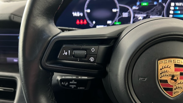 ..Fixed Glass Panoramic Roof, Riverside Approved Sale, 145 Point Riverside Approved Mechanical/Safety Check, 21in Alloy Wheels - Cross Turismo Design, Rear Axle Steering including Power Steering Plus, Deletion of Model Designation, Inlays Painted in Black High-Gloss, Electric charging port cover, Roof Rails - Black Aluminium, 4+1 Seats System, Interior Package - Carbon, Exterior Mirrors Painted in Exterior Colour, Electrically Folding Exterior Mirrors, Public Charging Cable - Mode 3, Rear Light Strip with PORSCHE logo in Black, BOSE Surround Sound System with 14 Speakers Including Subwoofer and a Total Output of 710 Watts, Porsche Electric Sport Sound, ParkAssist Including Reversing Camera, On-Board DC-Charger with 150 kW, Preparation for Rear Bike Carrier, Comfort Seats - Front 14-Way Electric with Memory Package, Side Window Trims - Black High Gloss, Privacy Glass, Complimentary 3 Month Warranty, Facility to Extend Warranty up to 24 Months, 11kW AC On-Board Charger, 12v Electrical Socket in Rear Luggage Compartment, 12v Electrical Socket in the Centre Console Storage Compartment, 16.8in Curved Display, 19in Alloy Wheels - Taycan S Aero, 2 USB-C Charge Ports in the Rear, 2 USB-C Connectivity and Charge Ports in the Centre Console Storage Compartment, 3-Point Automatic Seat Belts with Pre-Tensioners - Front and Outer Rear Seats and Front Force Limiter, 4-Point LED Daytime Running Lights, 50kW DC On-Board Charger for use of Public Charging Stations with a voltage of 400V, ABS - Anti-lock Brake System, Accent Package in Black, Active Bonnet System, Active Carbon Fine Dust Filter, Adaptive Air Suspension including Porsche Active Suspension Management - PASM, Advanced 2-Zone Climate Control, Aluminium Double-Wishbone Front Axle, Aluminium Multi-Link Rear Axle, Auto-Deploying Door Handles, Automatic Headlight Activation including Welcome Home Lighting, Automatic Hold Function, Automatic Tailgate, B-Pillar Clothes Hook on Driver and Passengers Side, Brake Calipers - Red, Brake Pad Wear Indicator, Bumpers Comprising High-Strength Cross Members and Two Deformation Elements Each with One Threaded Fixture Point for Towing Eye Contained in On-Board Tool Kit, Cable between Charger and Vehicle - 7.5m, Centre Console with Direct Touch Control, Charge Port on Driver and Front Passenger Side, Collision and Brake Assist, Comfort Seats - Front with 8-way Electrical Adjustment of Seat Height - Seat and Backrest Angle and Fore-aft Position, Cross Turismo Style Lower Valance