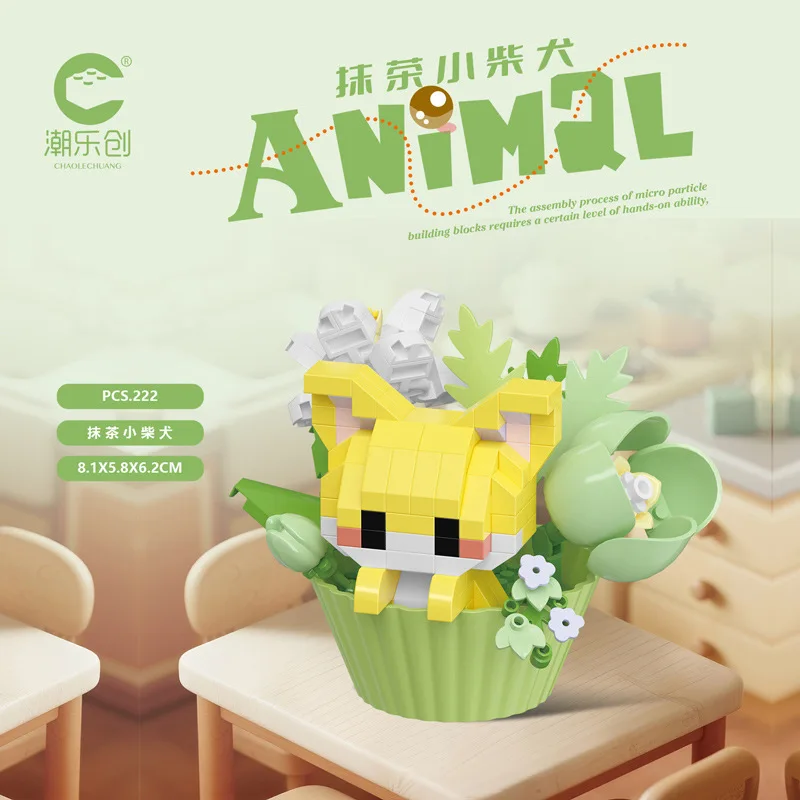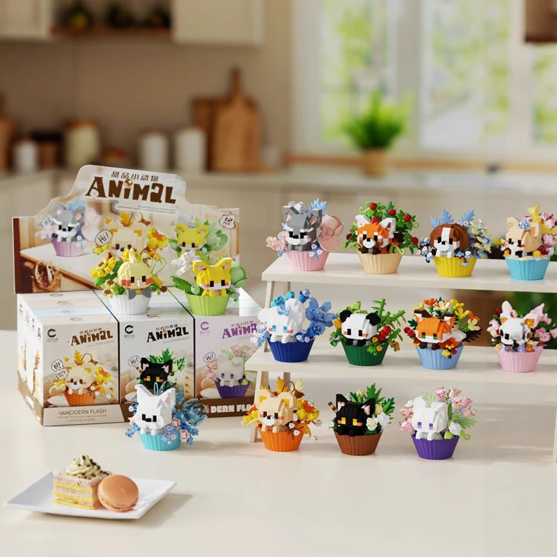 This cute dessert small animals potted bouquet cartoon doll panda puppy building block decoration with unique design that will surely attract people's attention.