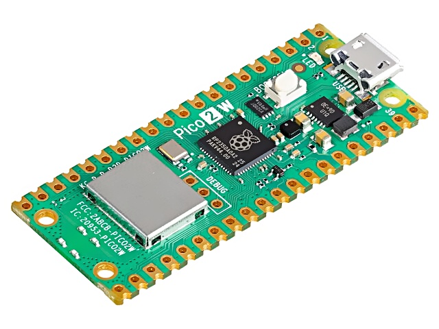 | | | | RASPBERRY PI PICO 2W RASPBERRY PI PICO 2 W Surtido: placa prototipo Raspberr  RASPBERRY PI PICO 2W RASPBERRY PI PICO 2 W Surtido: placa prototipo Raspberry Pi PICO 2 W 1,8-5,5VDC RASPBERRY PI Fabricante: RASPBERRY PI Tipo de conector: Micro USB Tipo de conector: PCB randart Tipo de conector: pasador Temperatura de funcionamiento: -20...85°C Voltaje de alimentación: 1,8...5,5 V DC Tipo de surtido: placa prototipo Interfaz: GPIO Interfaz: I2C Interfaz: PWM Interfaz: SPI Interfaz: SWD Interfaz: UART Interfaz: USB Frecuencia de reloj: 150 MHz Versión: inalámbrico Dimensiones: 51x21mm Protocolo de comunicación: IEEE 802.11n Protocolo de comunicación: WIFI Tipo de arquitectura: Cortex M33 Tipo de arquitectura: RISC-V Procesador: RP2350 Nombre comercial: Raspberry Pi PICO 2 W Memoria: 520kB RAM