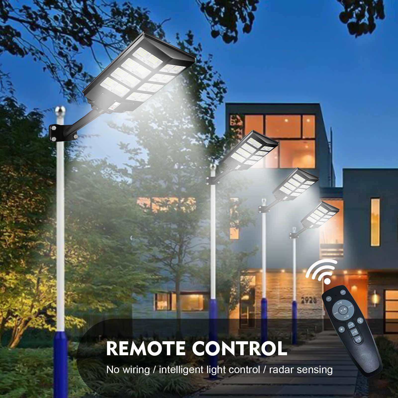 【DUSK TO DAWN & MOTION SENSOR】-- Auto ON at Dusk and Auto OFF at Dawn controller by high sensitive brightness sensor. The led solar outdoor light do not need to control manually, convenient and energy saving street light. Smart and sensitive motion sensor equipped, keep 30% brightness when no movement, bright up to 100% brightness when movement detected. Keep security but also energy-saving.