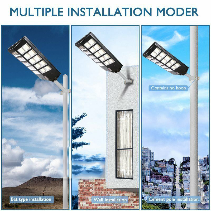 Easy installation: the solar powered street lights come with two installation methods: mast mounting and wall mounting, no wiring is required, which can be easily installed outdoors. Perfect for street and paths, parking lot, hiking trails, basketball court, pavements, farms, garage, garden, street, yard, squares etc.
