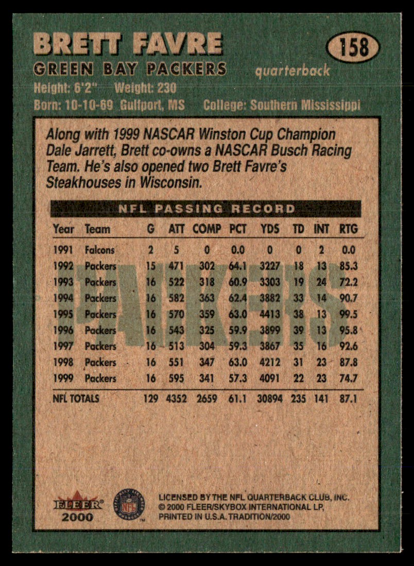 2000 Fleer Tradition Brett Favre Green Bay Packers #158
