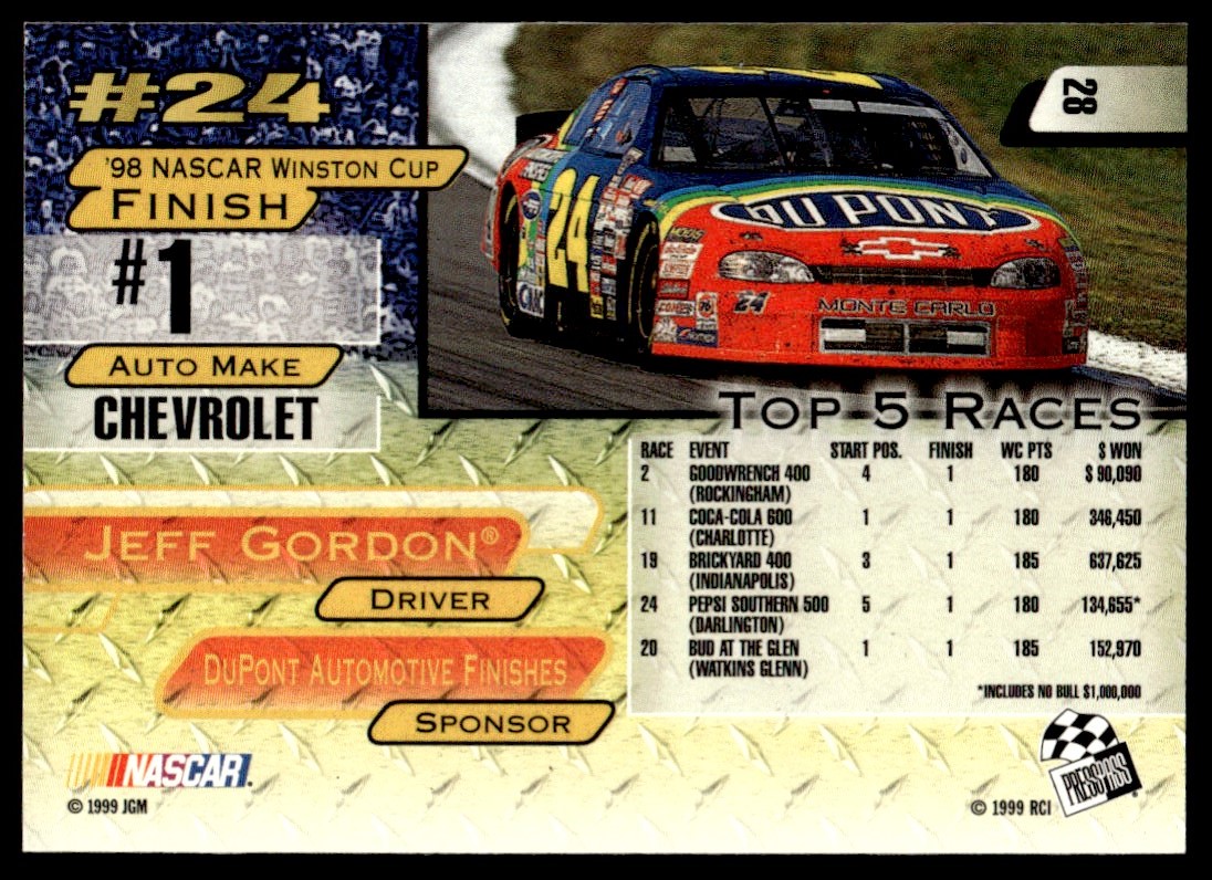 1999 Press Pass 28 Jeff Gordon