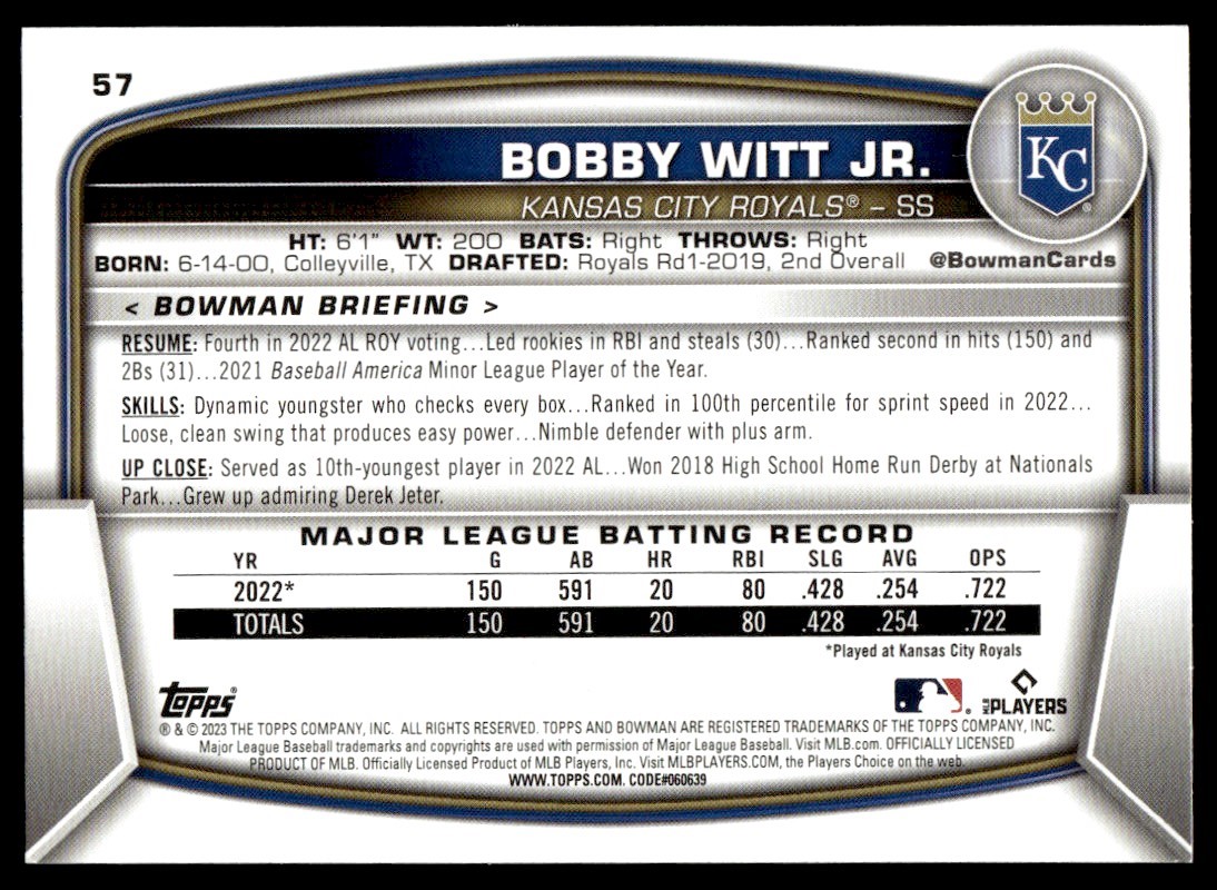 2023 Bowman Bobby Witt Jr. Kansas City Royals #57