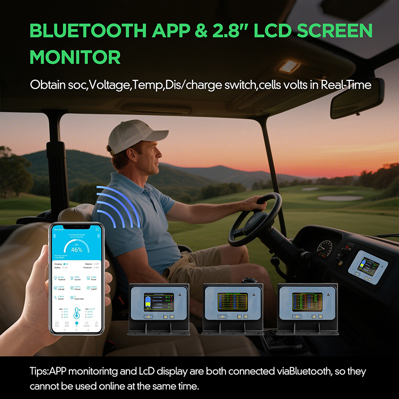 - Born for Golf Carts & LCD Touchscreen: The lithium battery is specially designed and engineered to meet the rigorous demands of the 48V golf cart industry, with more powerful energy and excellent performance, compatible with the main brand golf cart controllers in the market. And comes with a 58.4V 25A LiFePO4 charger, which supports fast charging, 0% to 100% in just 4 hours. Equipped with a 2.8-inch touch screen you can view and control the battery in real time on the LCD screen.