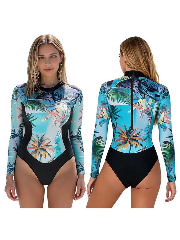 Women's Bodysuit Funny Swimwear UPF50+ Swimsuit Zip Up Leotard Stretchy RomperUSD 6.99