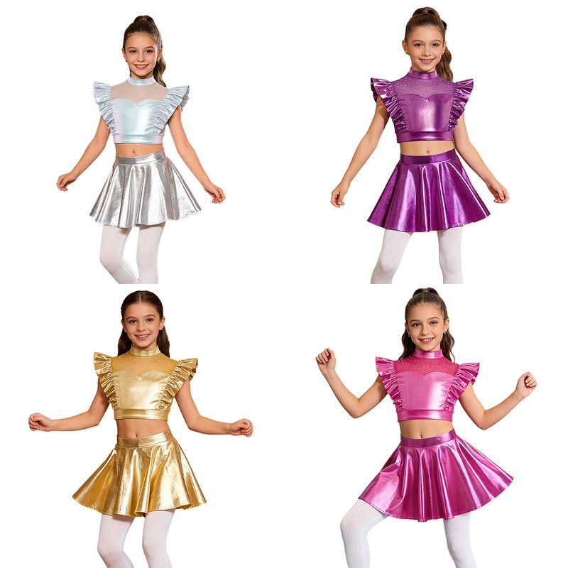 Kids Girls Dancewear Metallic Costume With Elastic Waistband Set Latin OutfitsUSD 9.99
