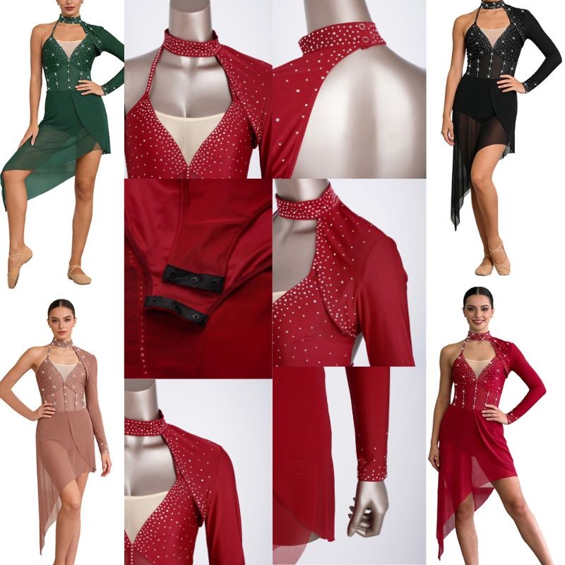 Women Dancewear Single Long Sleeve Dress Figure Skating Leotard Modern BallroomUSD 8.99